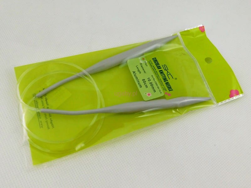 Wyjątkowo grube i trwałe druty dziewiarskie SKC na żyłce o długości 80 centymetrów.