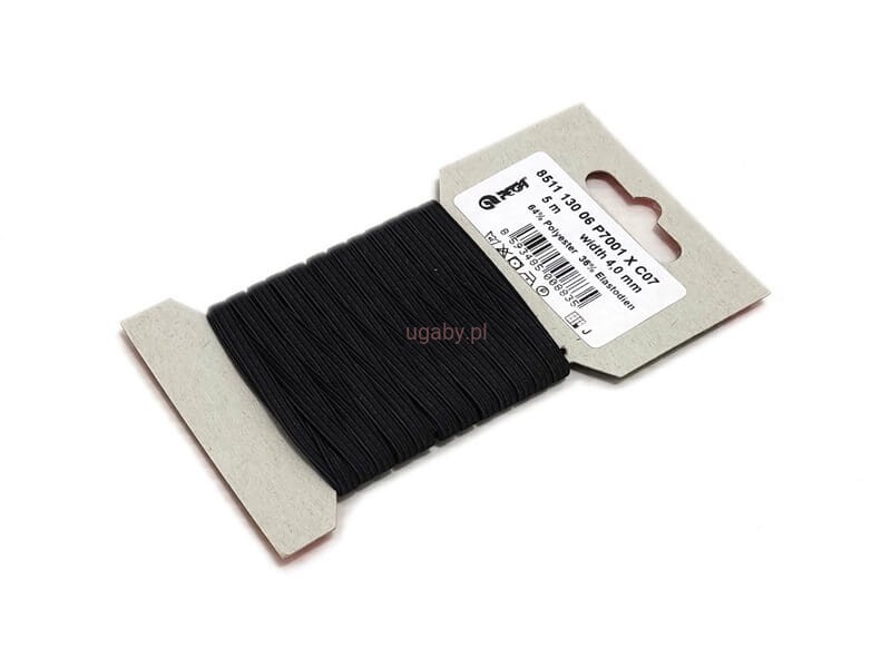 Guma jest estetycznie nawinięta na kartonik, co ułatwia jej przechowywanie i zapobiega splątaniu. Małe, poręczne opakowanie jest idealne zarówno do domowego kuferka, jak i do zaopatrzenia mniejszych pracowni krawieckich.