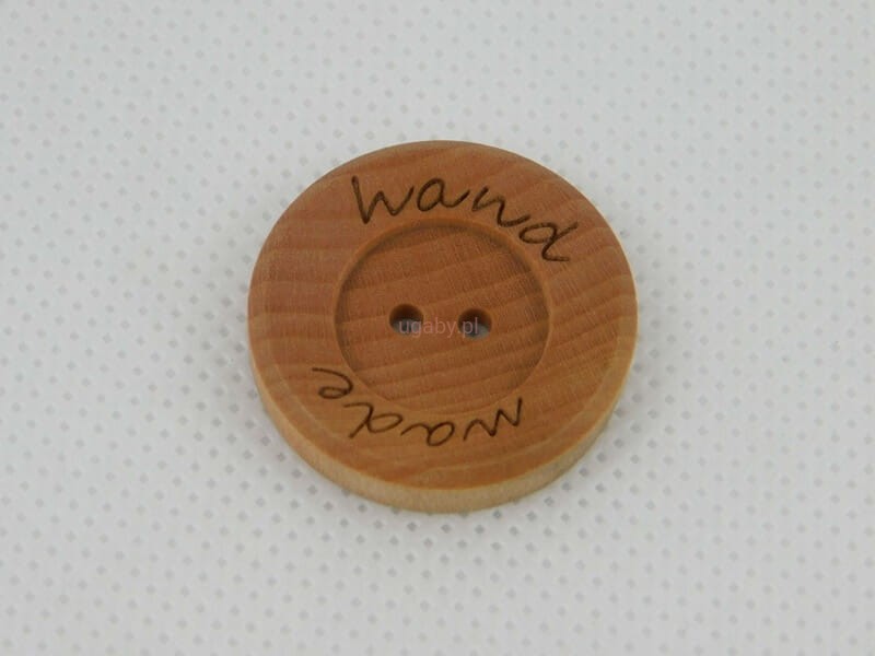 Podkreśl osobisty charakter swoich projektów tym ciepłym, drewnianym guzikiem o średnicy 28 mm z grawerowanym napisem "Handmade".
