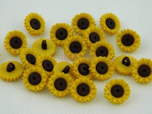 Wprowadź do swoich projektów słoneczną energię i radosny blask dzięki tym urokliwym, plastikowym guziczkom w kształcie słoneczników.
