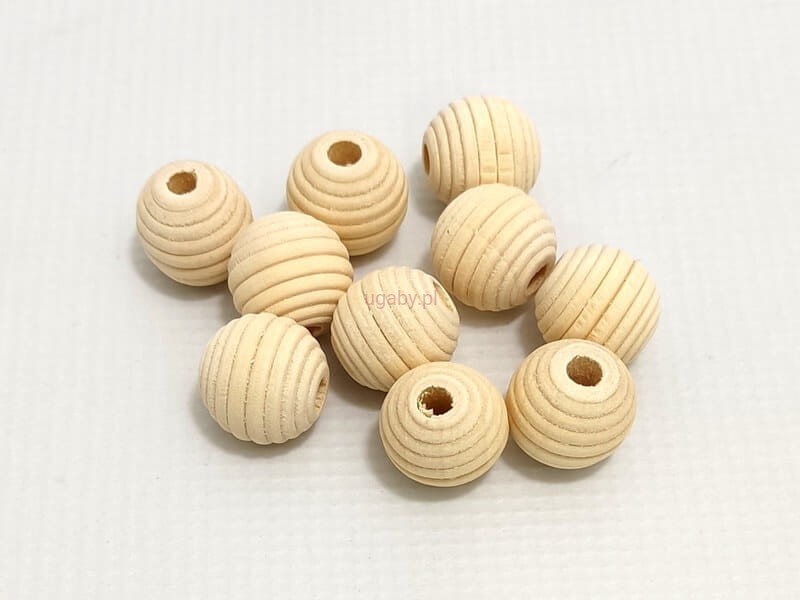 Prezentujemy duże naturalne koraliki drewniane o średnicy 20 mm. Charakteryzują się one wyrazistym, geometrycznym wzorem w postaci równoległych rowków, które nadają im wyjątkowej tekstury i surowego, a zarazem stylowego wyglądu.