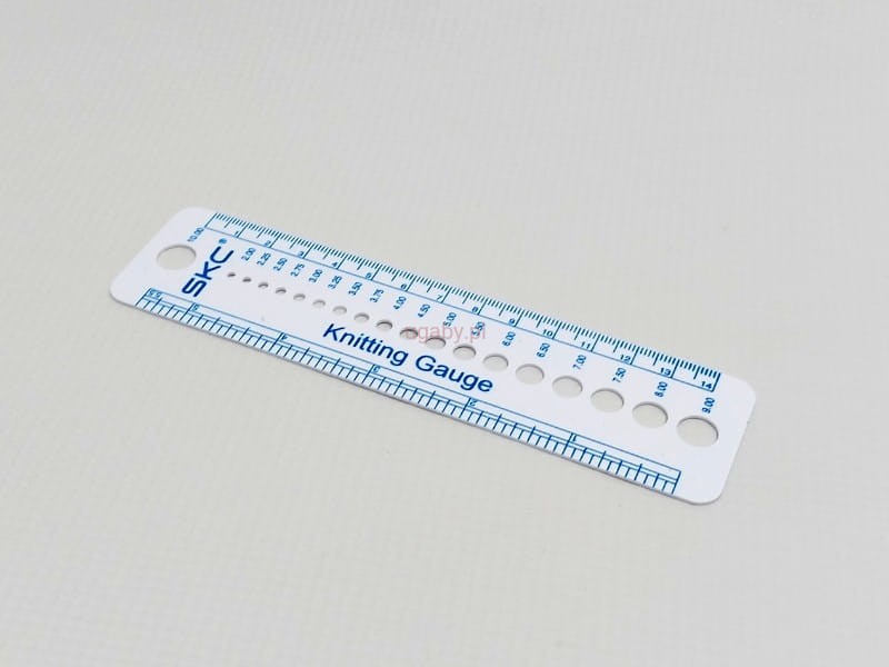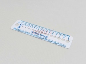 Wzornik Rozmiarów Drutów i Szydełek: Zawiera otwory do sprawdzania grubości używanych drutów i szydełek, zarówno w systemie metrycznym (mm), jak i amerykańskim (US). Ułatwia identyfikację narzędzi, zwłaszcza gdy numeracja na nich jest już nieczytelna.