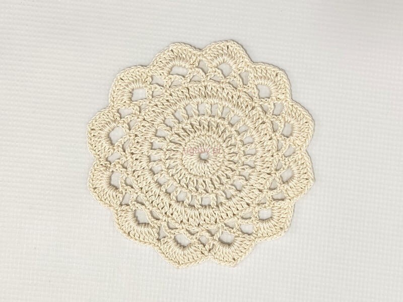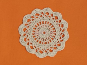 Serwetka, zrobiona na szydełku bawełnianego kordonka.