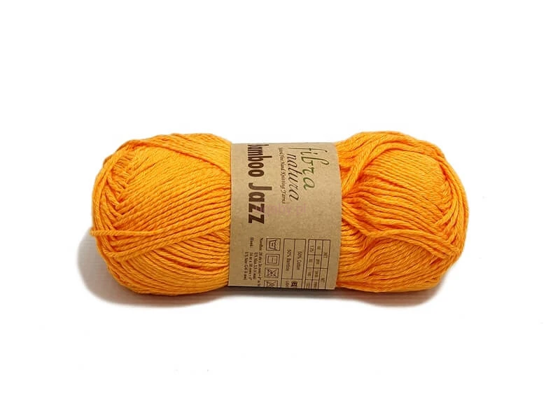 Włóczka Bamboo Jazz od Fibra Natura w kolorze pomarańczowym to produkt oparty na naturalnej mieszance bawełny oraz włókna bambusowego. Połączenie to zapewnia dzianinom odpowiednią wytrzymałość oraz charakterystyczną dla bambusa miękkość, co bezpośrednio przekłada się na komfort użytkowania gotowej odzieży.