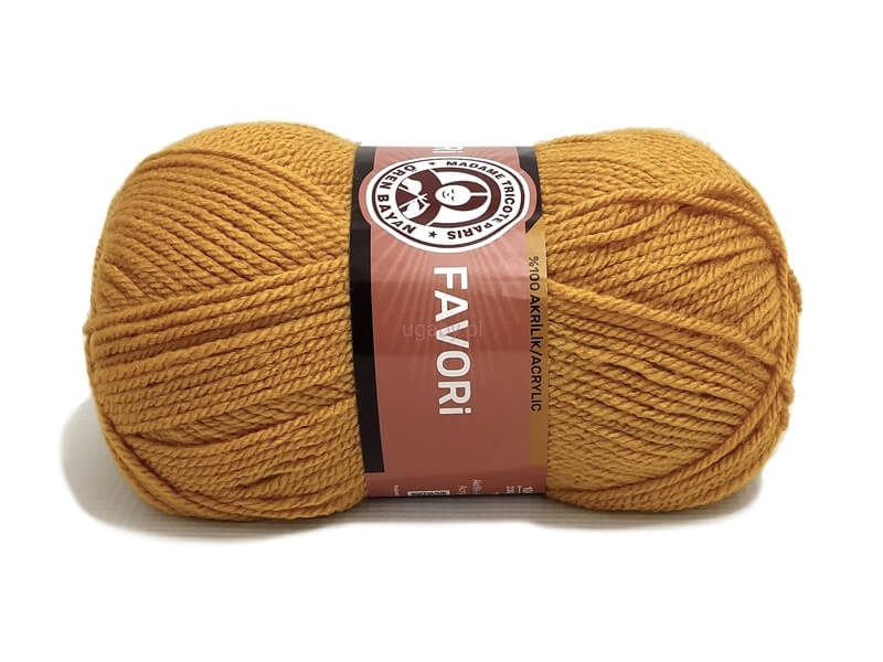 Włóczka Favori w odcieniu bursztynowym (numer 115) to klasyczna propozycja dla osób poszukujących miękkich i wytrzymałych materiałów do rękodzieła. Wykonana w 100% z akrylu, charakteryzuje się gładką strukturą i wyraźnym splotem, co ułatwia pracę zarówno na drutach, jak i szydełku.