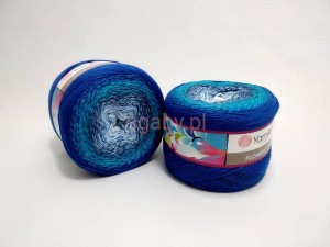 YarnArt Flowers to wysokiej jakości przędza typu „cake”, ceniona za niezwykle długie i płynne przejścia kolorystyczne. Skład łączący bawełnę (55%) oraz akryl (45%) gwarantuje dzianinie wyjątkową miękkość, przewiewność i stabilność kształtu. Konstrukcja z czterech lekko skręconych nitek pozwala na uzyskanie efektownego gradientu, w którym barwy przenikają się wzajemnie w sposób subtelny, tworząc harmonijną całość bez widocznych supełków.