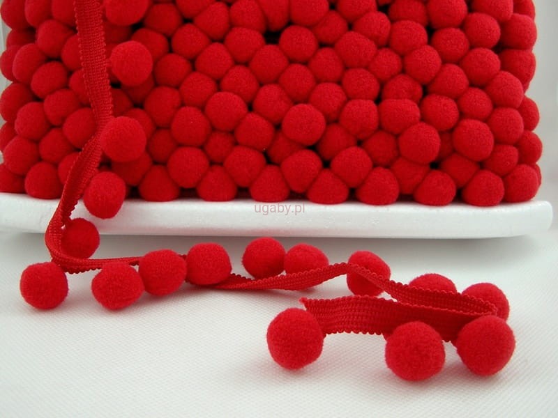 Taśma z pomponami kolor czerwony